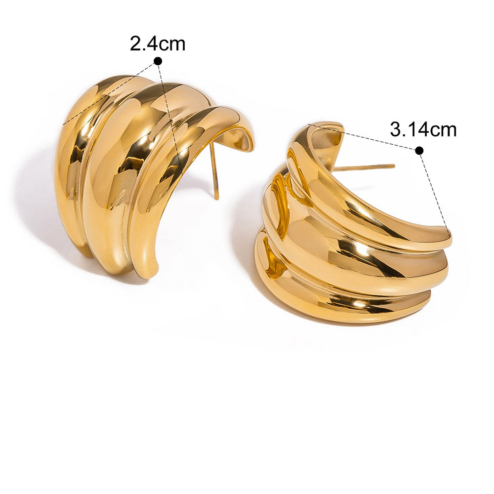 Εντυπωσιακά ατσάλινα σκουλαρίκια καρφωτά σε σχέδιο πολυσειράς με καμπύλες γραμμές που δημιουργούν έντονο και κομψό αποτέλεσμα. Ο γυαλιστερός τους σχεδιασμός χαρίζει διαχρονική λάμψη και αναδεικνύει ιδανικά τόσο minimal όσο και πιο βραδινές εμφανίσεις. Κατασκευασμένα από ανοξείδωτο ατσάλι για ανθεκτικότητα και άνετη εφαρμογή, έχουν διάσταση περίπου 2,4cm και αποτελούν ιδανική επιλογή για statement looks με μοντέρνο χαρακτήρα. Κόσμημα από ανοξείδωτο ατσάλι δεν μπορεί σε καμία περίπτωση να υποστεί οξείδωση (σκουριά), δεν μαυρίζει ποτέ και ασφαλώς δεν δημιουργεί αλλεργίες (υποαλλεργικό). Μπορεί να φορεθεί καθημερινά και χωρίς κανέναν περιορισμό κάτω από οποιεσδήποτε συνθήκες π.χ. επαφή με νερό, ιδρώτα ακόμα και στην θάλασσα. Έτσι λοιπόν, ένα κόσμημα το οποίο είναι κατασκευασμένο από ανοξείδωτο ατσάλι είναι σίγουρο πως θα διατηρήσει για πάντα τη μοναδική λάμψη του.