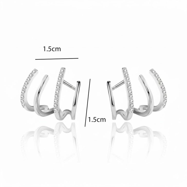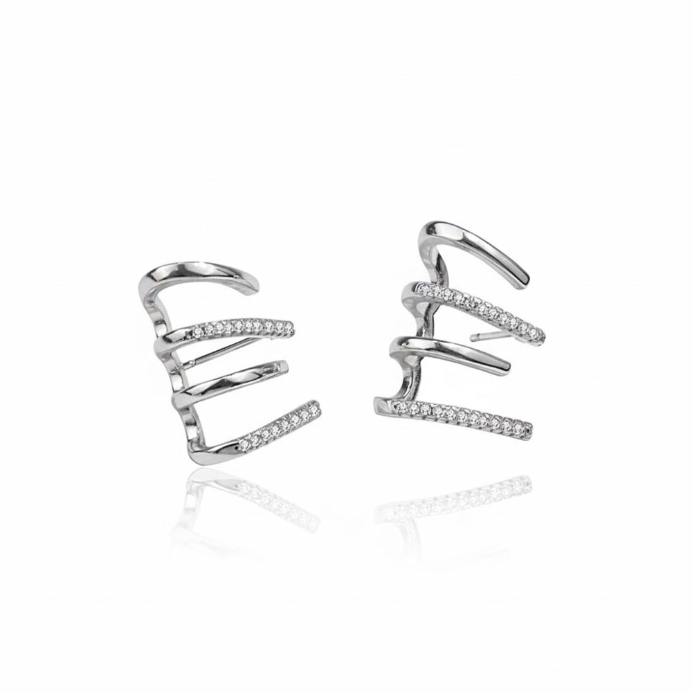 Ατσάλινα σκουλαρίκια με εντυπωσιακό σχεδιασμό τετραπλής καμπύλης και διακριτικές λεπτομέρειες από λαμπερά στρας, που δημιουργούν ένα μοντέρνο και κομψό αποτέλεσμα. Οι καμπύλες αγκαλιάζουν αρμονικά το αυτί, προσφέροντας ιδιαίτερο χαρακτήρα και φίνα λάμψη. Ελαφριά, ανθεκτικά και άνετα στη χρήση, είναι ιδανικά τόσο για καθημερινές εμφανίσεις όσο και για πιο προσεγμένες εξόδους, ολοκληρώνοντας κάθε σύνολο με στυλ. Κόσμημα από ανοξείδωτο ατσάλι δεν μπορεί σε καμία περίπτωση να υποστεί οξείδωση (σκουριά), δεν μαυρίζει ποτέ και ασφαλώς δεν δημιουργεί αλλεργίες (υποαλλεργικό). Μπορεί να φορεθεί καθημερινά και χωρίς κανέναν περιορισμό κάτω από οποιεσδήποτε συνθήκες π.χ. επαφή με νερό, ιδρώτα ακόμα και στην θάλασσα. Έτσι λοιπόν, ένα κόσμημα το οποίο είναι κατασκευασμένο από ανοξείδωτο ατσάλι είναι σίγουρο πως θα διατηρήσει για πάντα τη μοναδική λάμψη του.