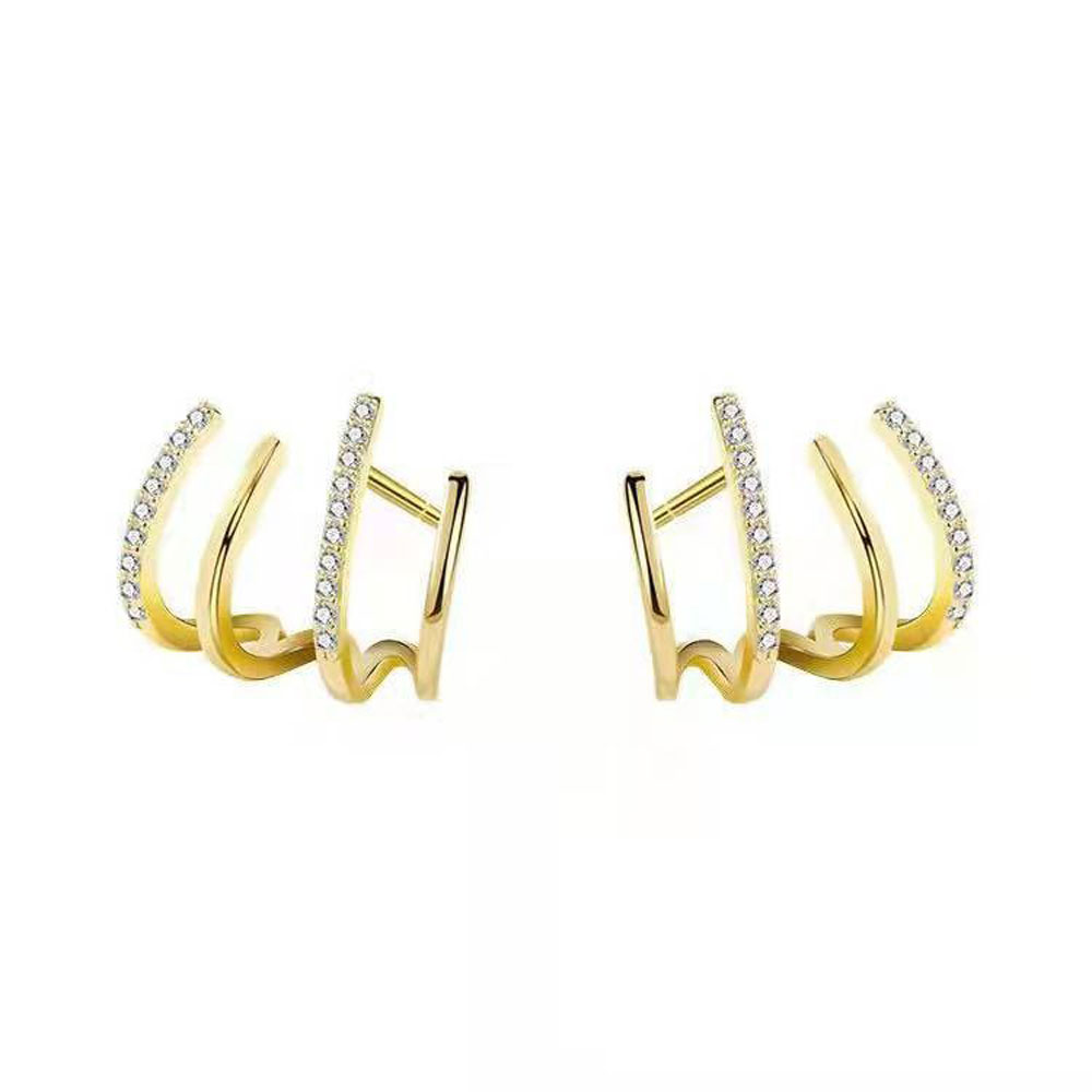 Ατσάλινα Σκουλαρίκια με Τετραπλή Καμπύλη & Στρας