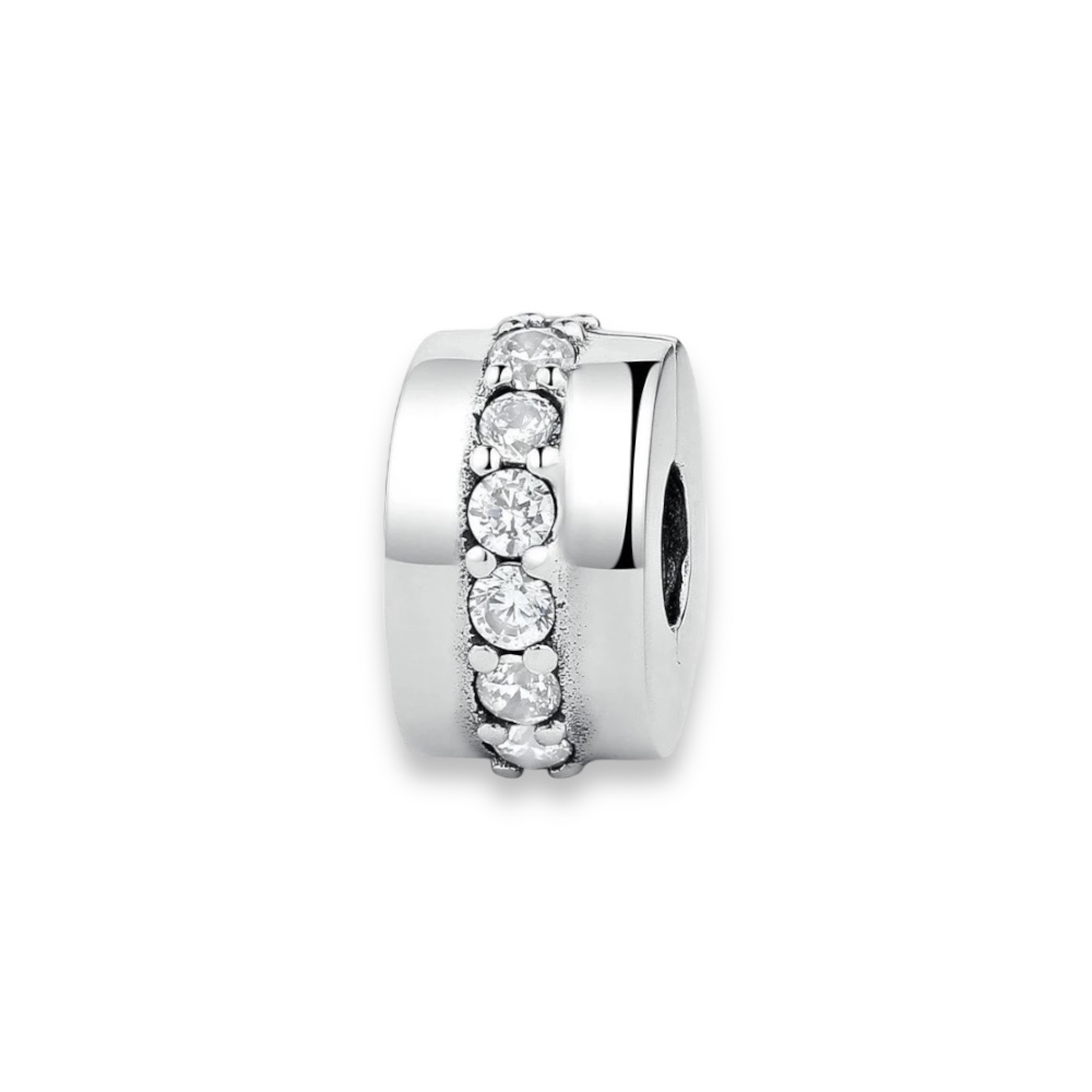 Αυτό το κλιπ δημιουργεί ένα εντυπωσιακό αποτέλεσμα στο βραχιόλι σας . Ασημένιο σε όλη του την επιφάνεια με ένα κεντρικό στεφάνι από λαμπερούς κρυστάλλους σας υπόσχεται ένα εκθαμβωτικό αποτέλεσμα που θα ολοκληρώνει άψογα την εμφάνισή σας .